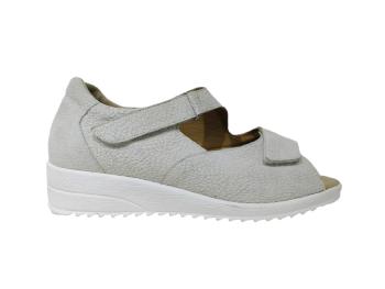 Durea – SANDAAL ACHTERAAN GESLOTEN – De sandaal heeft twee klittenbandsluitingen: een op de voorvoet en een over de wreef. De brede banden zijn individueel verstelbaar en zorgen ervoor dat de sandaal gegarandeerd goed aan de voet blijft zitten. En dat is nog niet alles: de band op de voorvoet is uitgevoerd in zacht, extra flexibel materiaal tegen knellen. Deze sandalen vormen zich direct naar de voet waardoor ze ideaal zijn voor mensen met een standsafwijking van de tenen (hallux valgus, klauwtenen en hamertenen). uitneembaar voetbed voor eigen inlegzolen. Kleur : gebroken wit