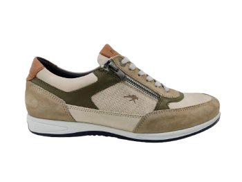 Floris Van Bommel – 1598 – deze trendy sneaker uitgevoerd met een soepele, lichtgewicht zool met een slijtvast rubber loopvlak. Bij de hiel is de zool voorzien van een sportieve stabilizer. De sneaker is uitgevoerd in een rijke mix van oranje textiel en suède. De binnenkant van de sneaker is afgewerkt met een hoogwaardige lederen voering. Het uiterst comfortabele voetbed, dat ook met leer bekleed is, is uitneembaar en kan eventueel worden vervangen door een eigen voetbed of steunzool.