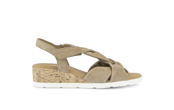 Gabor – SANDAAL H KRUIS – Deze beige sandaal van suède voelt zacht en soepel aan waardoor je meteen geniet van een elegante en comfortabele zomerse pasvorm. De speels gedraaide bandjes geven de sandaal een verfijnde en vrouwelijke uitstraling die moeiteloos past bij zowel casual als geklede outfits. Het soepele suède ligt aangenaam tegen je huid en vormt zich mooi naar je voet. Dankzij het vaste voetbed ervaar je bij elke stap een stabiele ondersteuning waardoor deze sandaal ideaal is voor lange dagen waarop comfort belangrijk is. De wijdte H biedt extra ruimte en zorgt voor een ontspannen en comfortabele pasvorm, vooral wanneer je een iets bredere voet hebt.