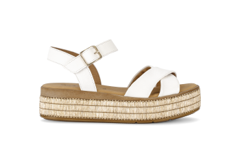 Gabor – SANDAAL ESPADRILLE LOOK – Ontdek onze trendy en comfortabele sandalen die je meteen in zomerse sferen brengen. Deze stijlvolle must-haves combineren het beste van twee werelden: een frisse, witte lederen afwerking met een elegante espadrille-look zool. Het resultaat? Een lichte, luchtige uitstraling die perfect past bij zonnige dagen en zwoele zomeravonden.
