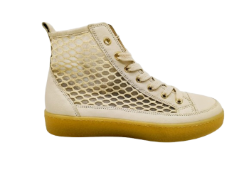 Gabor – HOGE SNEAKER – Deze hoge sneaker in panna kleur is een echte eyecatcher. Het kanten netwerk aan de zijkant geeft de schoen een unieke en stijlvolle uitstraling. Superknap afgewerkt, heerlijk licht om te dragen en perfect voor elke dag. Ik ben er helemaal fan van! Uitneembaar voetbed voor eigen inlegzolen.