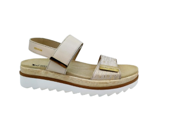 Vital – 1655 – sandaal met sleehak en klittenband. Vital is gekend om hun perfecte afwerking en hun heilzame werking op de bloedsomloop in de voeten en benen. Kleur : zilver